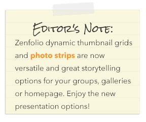 One of my personal favorites, this category embraces new and interesting ways to display your images, for example, grids and photo strips. The grid layout is very versatile because it can be tailored to best showcase the type of work you are presenting. I have seen photographers use this to showcase specific types of portraits, and I appreciate the consistency in the quality of their work, all showcased in a beautiful presentation. The photo strip is equally awesome as it creates a scrolling navigational storyboard within a gallery. I love the fact that images can be presented right up against each other—reminiscent of our old friend, the negative—creating interesting juxtapositions of light, color, contrast and subject matter. The new gallery options help your images sing and keep visitors coming back for more.