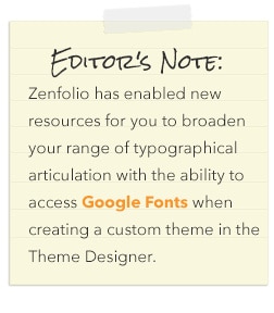 Photographers are now able to choose from a variety of different fonts without having to figure out how to code them into our websites or mess around with licensing agreements. In the past, we were limited to standard fonts for browser compatibility. However, Arial, Georgia and Times New Roman can only take you so far in terms of expression. Thanks to companies like Google, who came up with Google Fonts, you now have the option to pull from a wider variety of interesting and expressive typographical choices, which can communicate more about you and your work. If you are interested in reading more about how typography can communicate, check out this typographical blog mentioned on Host Gator.